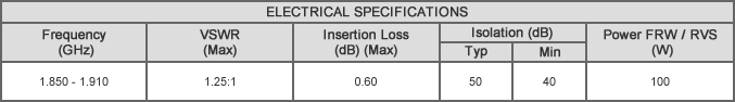 I2N-1.880WWP, 100 Watts, N-Female 1.850-1.910 GHz