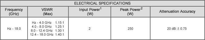 For best results when selecting an RF attenuator for a given connector style, make sure to consider the amount of power being absorbed and the acceptable level of reflection (VSWR) that can be tolerated over the operating frequency range.