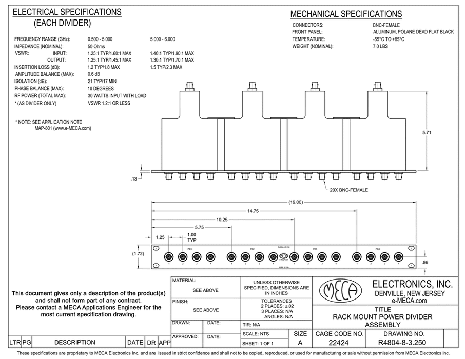 R4804-8-3.250, 4-Way, BNC, 0.500-6.000 GHz